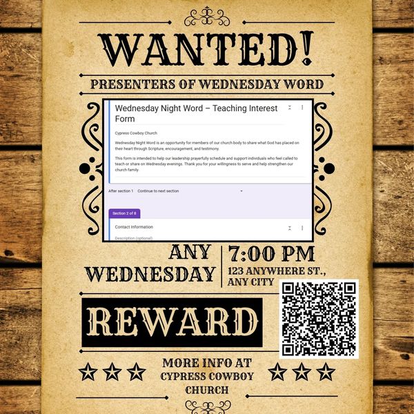 Saddle up with us on the first Friday of each month at 6:30 p.m. as we open the Bible together, studying with heart and mind and learning how faith in Jesus guides our everyday lives.